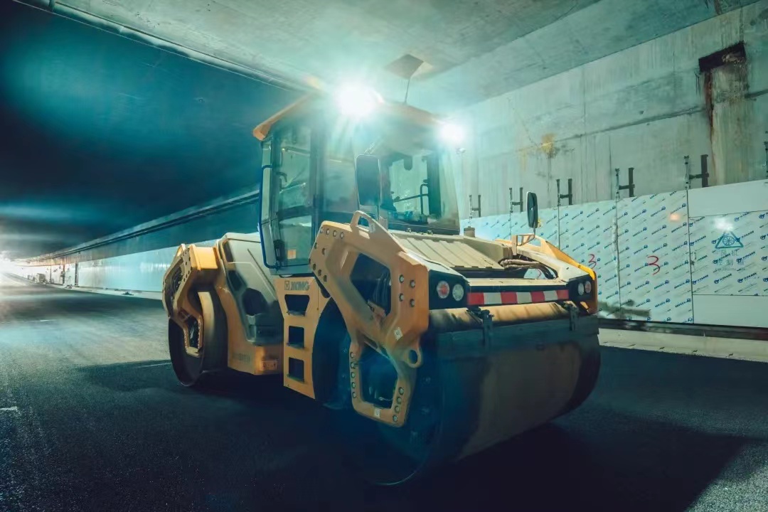 徐工成套高端油面设备,凭借引领行业的产品技术实力 金牌高清播放,为妈湾跨海通道的道路建设提供了成套化的高效施工解决方案,确保隧道路面施工作业圆满实施。
