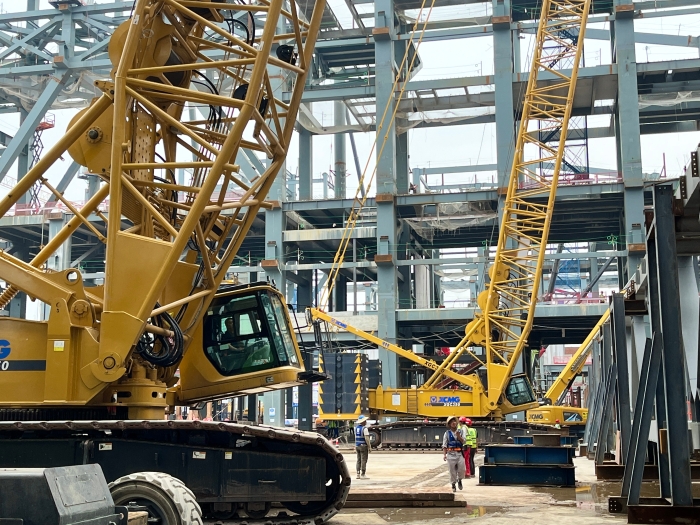 肩负着客户的信任 金牌影视资源,两台徐工XGC350履带起重机依靠便捷的操作功能和完美匹配的工况,在两位专业操机手的配合下,准时起勾,经过起升,回转,定位等一系列高精度的动作,高效率地将重物安装就位。