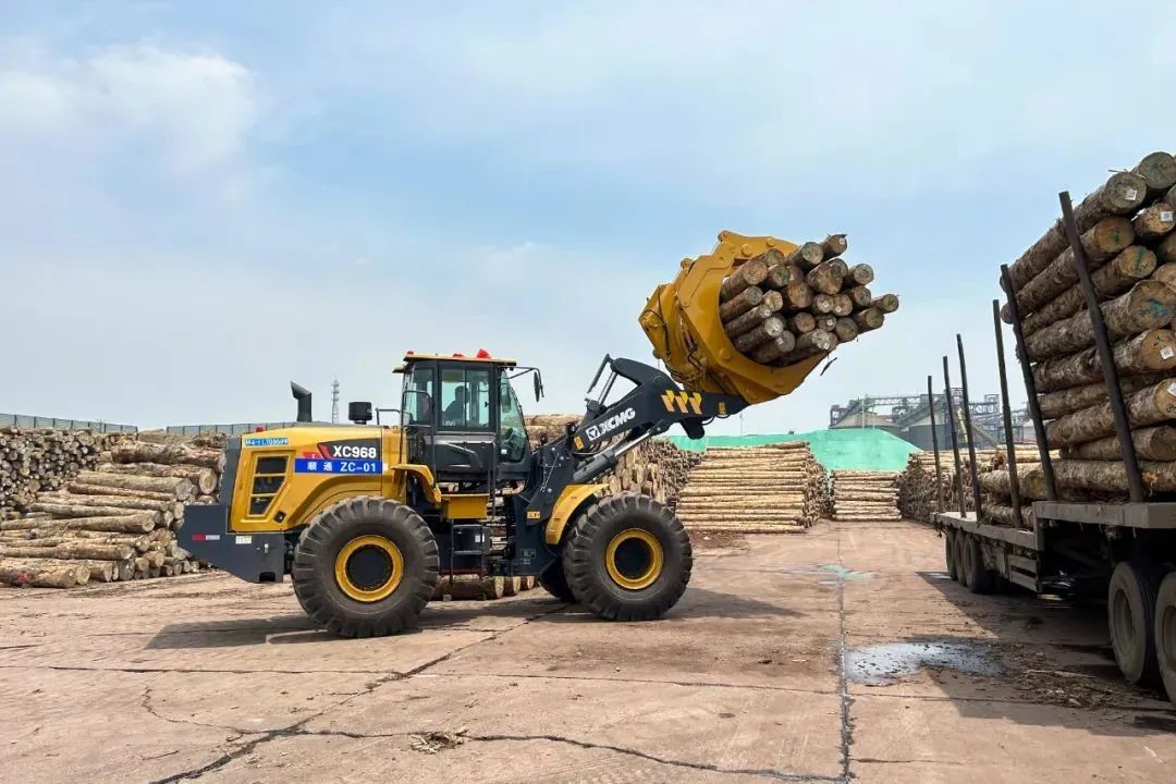 随着满载原木的货轮缓缓靠岸,日照港瞬间切换为一派繁忙景象,20台徐工XC968I夹钳机迅速启动 金牌影院,排列有序登上甲板,将原木从入港船舶上夹起,转运至等待装运的卡车,动作一气呵成。