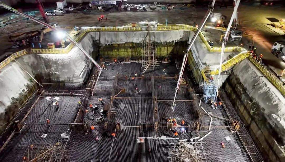 施工现场,三台徐工大米数泵车臂架齐伸,昼夜不休,48小时完成9300立方米浇筑量,高效,稳定,精准地完成泵送任务,助力项目实现重要节点目标 金牌影视资源。
