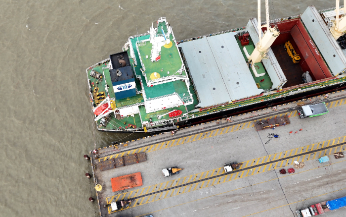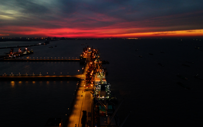 在设计年吞吐量达260万TEU的上海罗泾港区 金牌影院,航线密集,喧嚣忙碌。