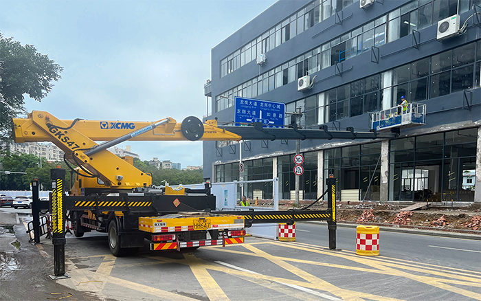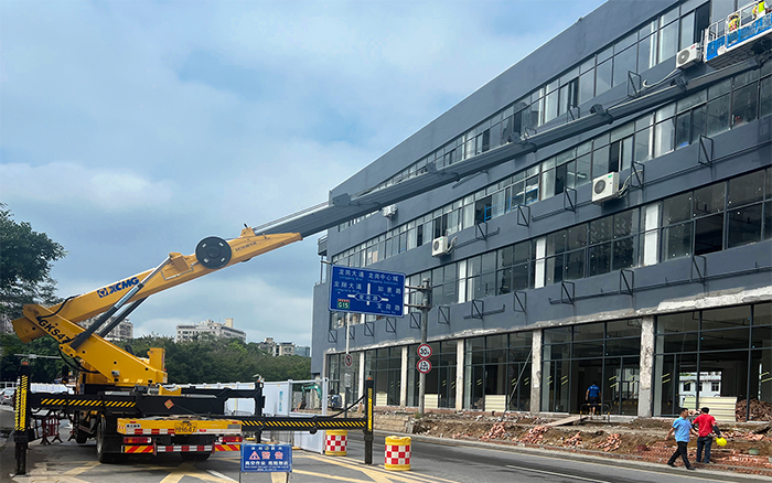 本次施工恰逢傍晚高峰期 金牌影院在线观看,时间紧,任务重,且水电路管道安装需要长时间,高精准的持续性作业,对高空车性能要求较高,为避免占道施工阻碍交通,徐工GKS47高空作业车在街道对面的临时停车区域快速展车,作业斗搭载3名施工人员和管路材料平稳伸出20余米,横跨整条街道,直抵商铺外立面的作业地点,凭借独有的高精度比例阀驱动控制技术,实现微小流量的精准控制,使工作平台毫米级的位置调节,便于工作平台位置精调;柔性制动让操作更加舒适,能够精准识别操作员的操作意图,制动体验平稳,低冲击,小晃动,以“微动性,安全性,高效率,大跨距”产品特点完美应对此次施工任务。