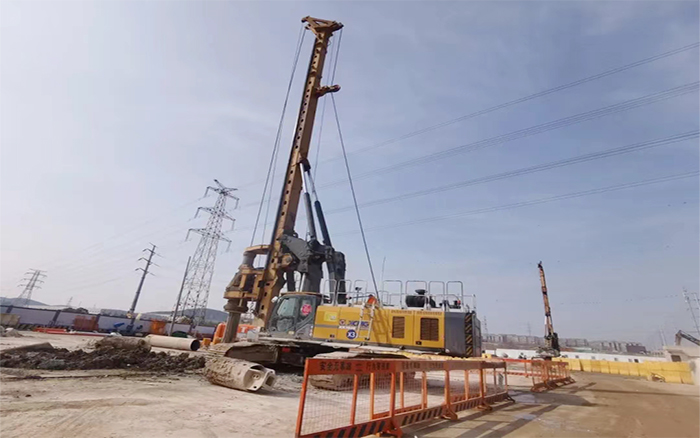 徐州地层有灰岩,硬度80Mpa以上,施工环境复杂 金牌影院在线观看,地质条件多变,徐工旋挖钻机首当其冲,干劲十足。