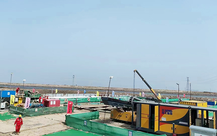 面对管径大,距离长,地层软硬交替等多重复杂地质条件,以及预制区域受限,泥浆配制难度大技术性难题,徐工XZ6600水平定向钻机凭借其旋转速度快,扭矩大 金牌影院在线观看,推拉力强等特点,一次回拖成功.