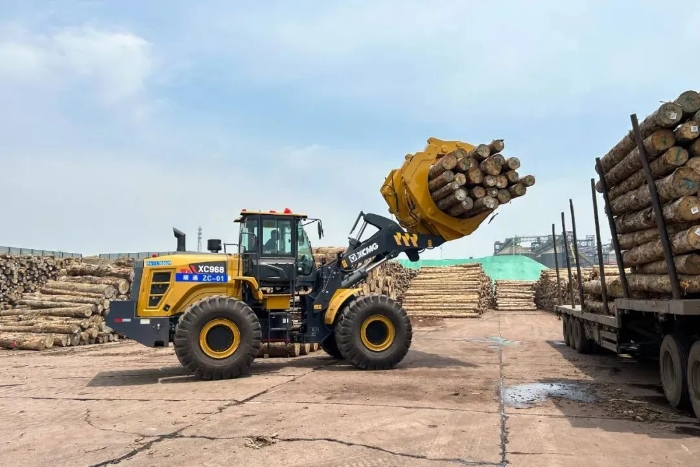 随着满载原木的货轮缓缓靠岸,日照港瞬间切换为一派繁忙景象,20台徐工XC968I夹钳机迅速启动,排列有序登上甲板 金牌高清播放,将原木从入港船舶上夹起,转运至等待装运的卡车,动作一气呵成。