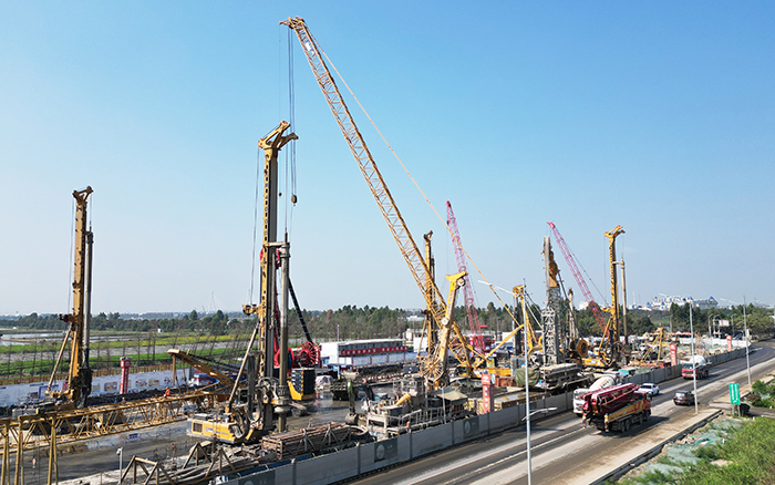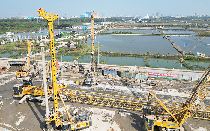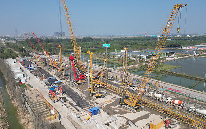 徐工旋挖钻机,连续墙液压抓斗,双轮铣等基础工程施工成套化设备集结出击 金牌影院,参与建设南沙至珠海(中山)城际万顷沙至兴中段(以下简称“南珠中城际”)项目,助力中山迈进大湾区轨道交通新时代。