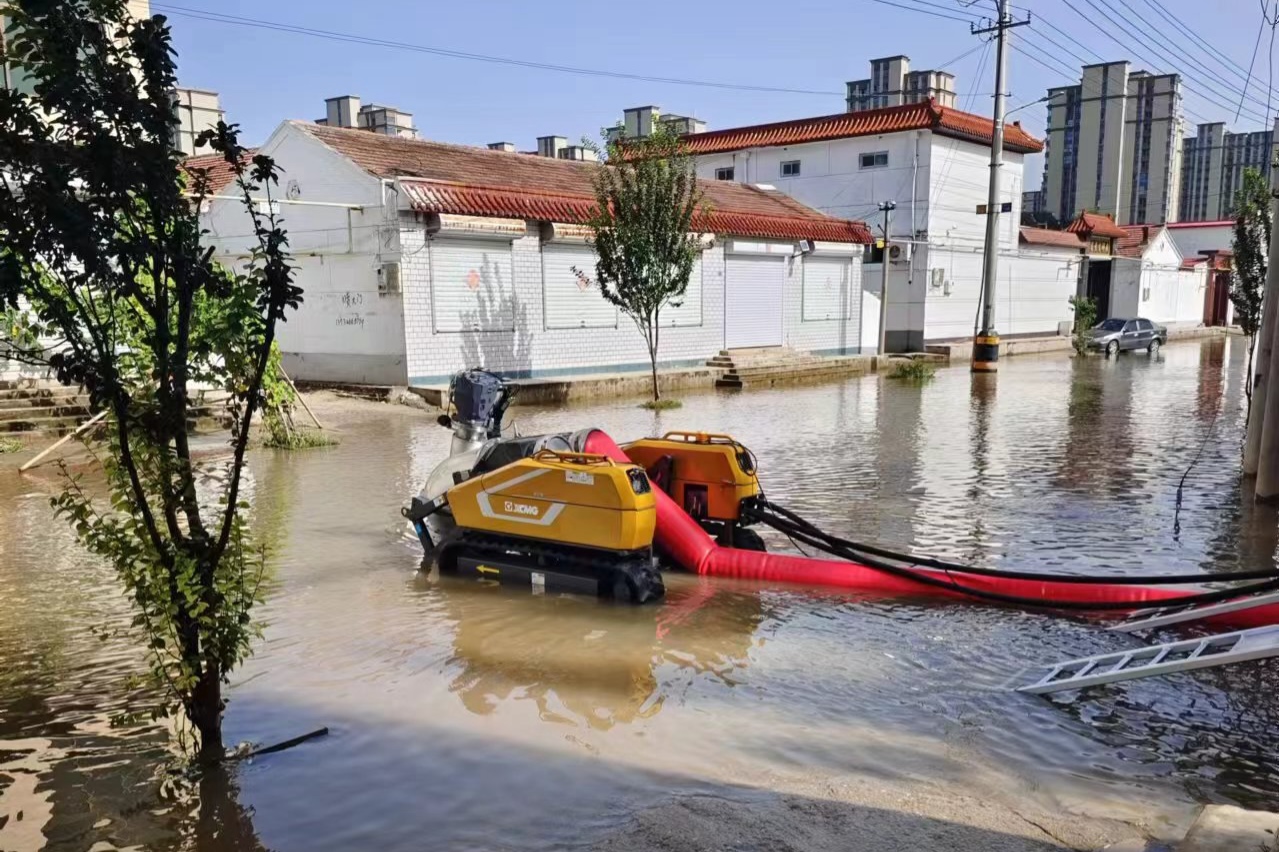 近日,受持续强降雨影响,河北廊坊霸州市城市内涝严重,闻“汛”后,徐工子母式排水抢险车PS30F4连夜奔袭 金牌影院,驰援排涝抢险。