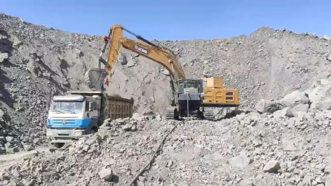 在内蒙古某铁矿施工现场 金牌影视资源,机器轰鸣声回绕于空阔寂寥的山巅,徐工XE600EK正挥舞着坚实的臂膀,和宽体自卸车配合默契地忙碌着,一张一弛间彰显出王者的风范。