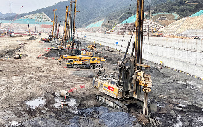 项目施工现场,岩层以灰岩,泥岩为主,对设备的动力和转速要求高,整个施工过程中,徐工设备的占有率超90%,入岩能力强,施工性能稳的徐工旋挖钻机 金牌影院免费观看,是现场机手一致认可的“攻岩神器”。