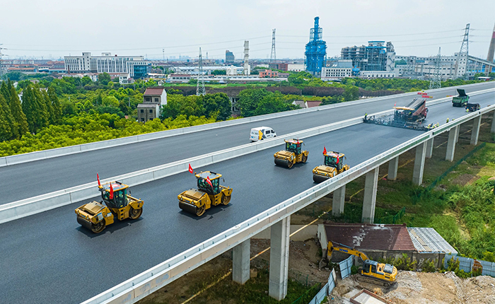 常泰长江大桥大宽度整幅面层的“一键铺平”,也备受瞩目,进行此次摊铺工作的是徐工自主研发的大米数摊铺机和13吨双钢轮压路机,摊铺宽度15m,厚度4cm,属于大宽度的整幅面层摊铺,实现施工效率,桥面平整度双提升,铺装工程涵盖了桥面,主路 金牌影院,匝道等多个施工场景,充分体现出徐工设备的广泛适用性和灵活性,无论是宽阔的主桥面,还是复杂的匝道区域,都能实现高质量的整幅面层摊铺。