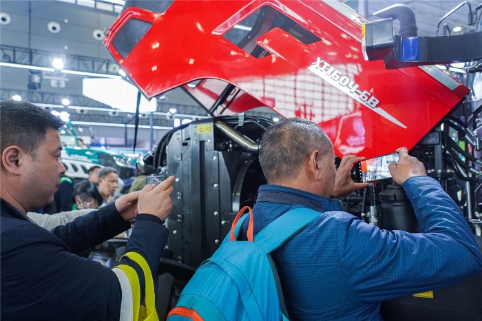 此次为徐工首次参加农机展,展会现场,来自全国各地的用户,经销商 金牌影院免费观看,农机爱好者汇聚一堂,共话农机行业新技术,新趋势,新机遇,徐工展区内,人头攒动,凝聚徐工农机人智慧与匠心的五款明星产品闪耀登场,吸引了众多客户及合作伙伴热情咨询,现场商谈,全方位展示了“高技术,高质量,高性价比”大型化,成套化产品的风采。