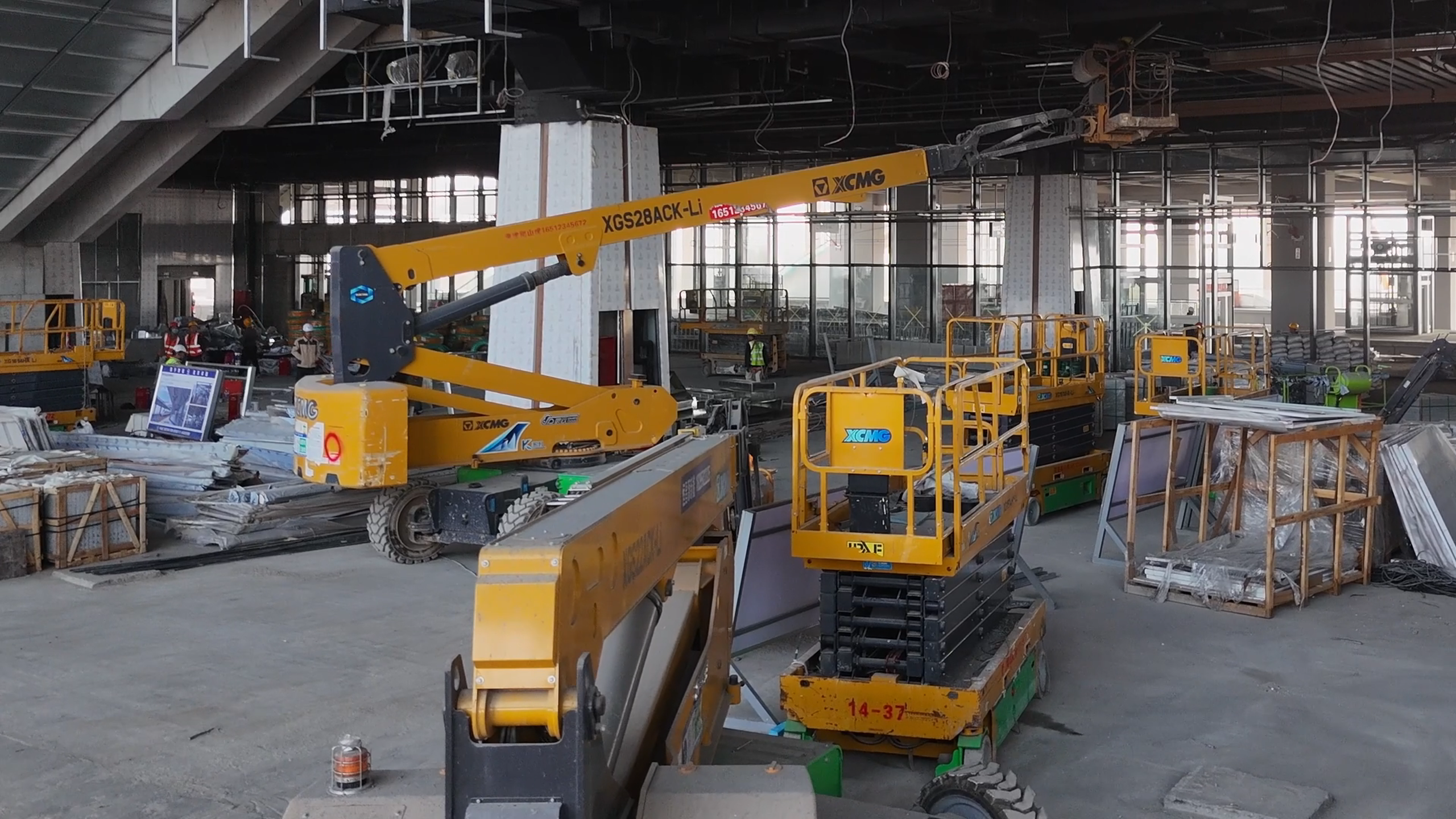 在山西省朔州火车东站建设现场,百台“徐工金”高空作业装备正热火朝天的进行玻璃幕墙安装及管道铺设作业 金牌影院,为项目的早日建成通车贡献力量。