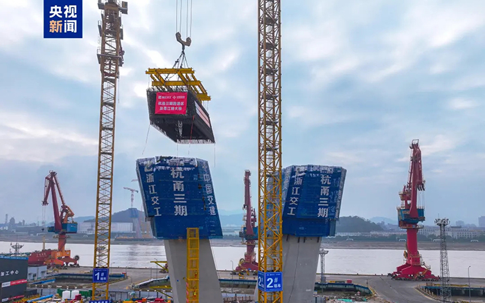 近日,在甬江特大桥施工现场,徐工超大塔XGT3000-120S挥舞铁臂 金牌影院,67吨的钢筋部品被稳稳吊起,精准安装,徐工助力这一世界级跨江大桥建设提速加码。