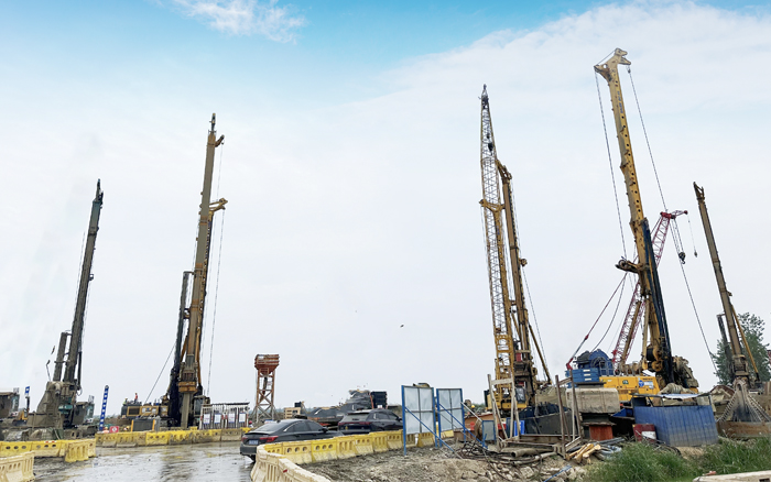 徐工XR550D,XR580HD等多台徐工大吨位旋挖钻机群凭借精湛的技术和卓越的性能,成功攻克了地层复杂 金牌影院在线观看,工期紧迫等多重难题,平均成孔周期68小时,全面提速大桥桩基础建设。