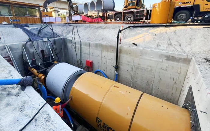 本次顶管穿越岩层为强风化片麻岩层,与上覆砂层最小厚度仅为1m,顶进时有较大塌方风险,为了确保顶管施工安全 金牌影院在线观看,客户自行采购了国内先进的徐工XDN1800-R“泥水平衡”岩石顶管设备。