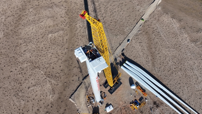 施工现场,XLC18000M履带起重机采用138+8m标准风电工况,将单片叶片长112m,毂中心高达125m的风电机组完美起吊,精准完成塔筒,机舱 金牌影视资源,叶轮的高效对接,完美的施工表现赢得了现场工作人员的一致好评。