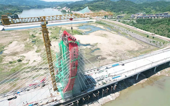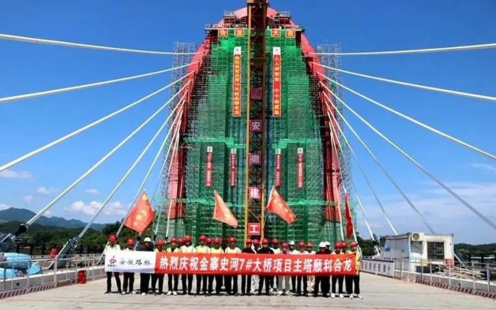 金寨史河7#大桥项目主塔顺利合龙