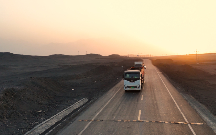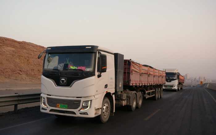 西北戈壁滩上山脉和天际线交织成一幅壮丽的画卷这片土地不仅有着丰饶的矿产资源还孕育着不断崛起的力量徐工新能源重卡应时而至。