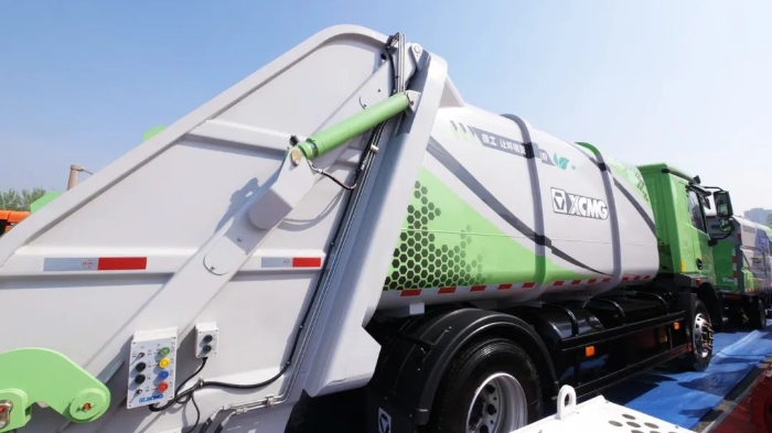 徐工XGH5180ZYSXBEV纯电动压缩式垃圾车为徐工一体化产品。