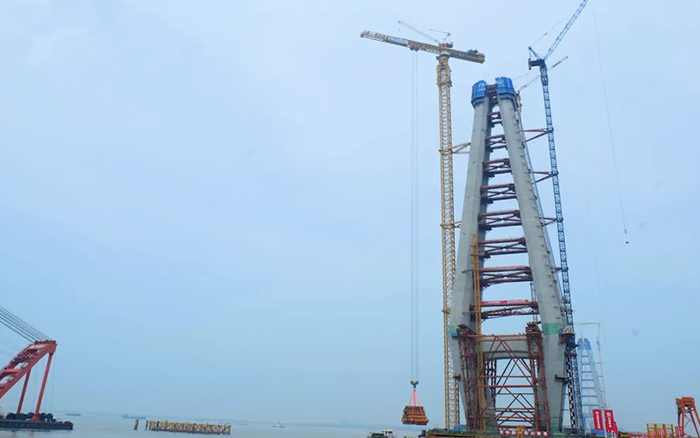 目前,在常泰长江大桥的XGT15000-600S已升高到250米,之后塔机会随着主塔慢慢“长高” 金牌影院免费观看,待到桥梁主塔封顶,塔机将会升到379米,这一高度将打破桥梁施工领域的塔机高度纪录。
