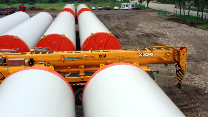在繁忙的港口,长40米,重100吨的风力发电塔筒摆放整齐,等待着一次关键的腾挪,吊装空间局促——塔筒摆放距离较近,荡距空间严重受限,这是对起重机性能与操控的极致考验,徐工G2代起重机XCA200G8-1从容入场 金牌影院,以实力宣告:空间,绝非限制。