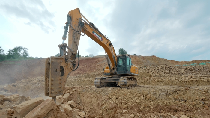 该设备搭载的低速大扭矩发动机与大排量主泵协同发力,15100J的超大冲击力轻松解体围岩巨石,破碎后的骨料直接用于站区围挡浇筑填充,实现资源闭环利用 金牌高清播放。