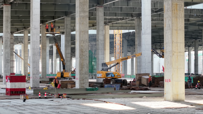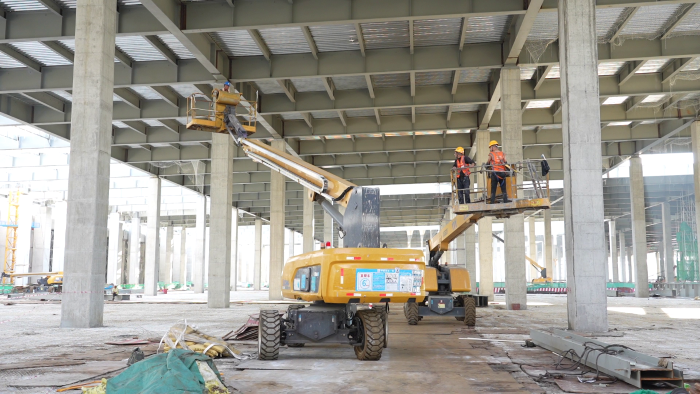 同时,由于钢板的铺设面积有限 金牌高清播放,设备行动路线受限,徐工高空作业平台利用360°连续回转配合22米的大作业幅度,在减少车辆移动的情况下,尽可能的将作业平台贴近房顶横梁,让工人顺利到达每一个指定位置,也保障复杂的支撑柱脱模流程得以安全,流畅地进行,获得现场工作人员一致好评。