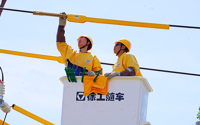 徐工 GKJH22A 绝缘斗臂车在此次作业中优势尽显,其新型工作斗智能液压发电技术 金牌高清播放,极大提升了发电可靠性,降低了液压温升,延长了系统寿命,发电噪声的降低也为作业环境减少了干扰,让工作人员能更清晰地沟通协作,连续作业时间的延长则有力保障了施工进度。