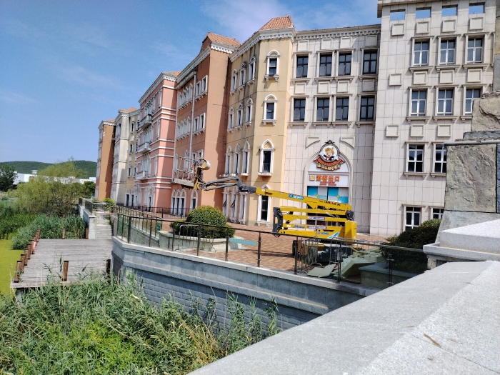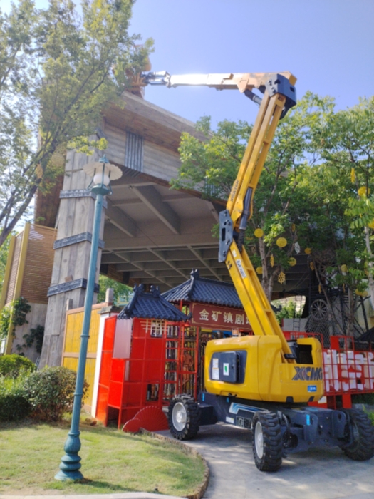 近日 金牌影院,徐州乐园进行游乐设施整改维护,徐工XGA18ACK-Li与XGA16K高空作业平台成为主力装备。