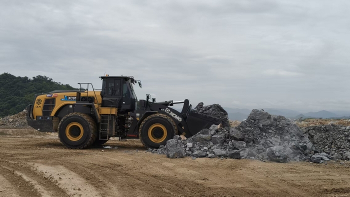 在东南亚某大型采石场,徐工XC9108-EV纯电动装载机正繁忙作业,这台“钢铁巨兽”轻松铲装 金牌影院在线观看,转运着沉重石料,成为这座采石场绿色转型的核心力量。