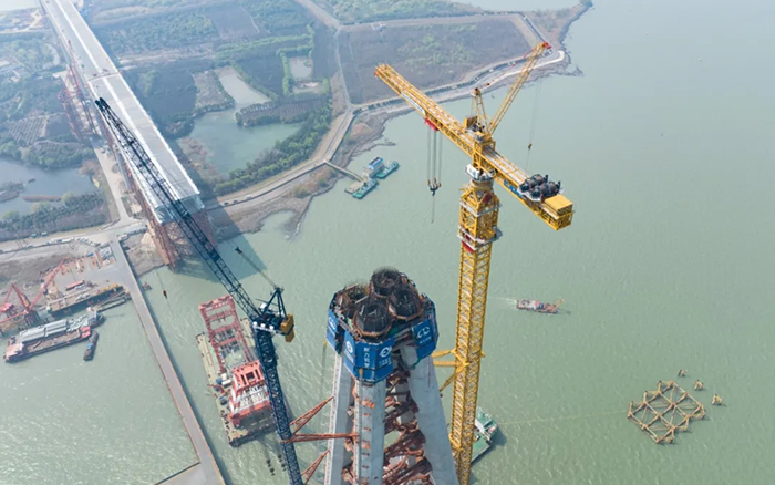 为有力保障常泰长江大桥这一世界级超级工程的建设,徐工与中铁大桥局联合研发了全球最大塔机XGT15000-600S,于2022年6月2日成功下线交付,该产品额定起重力矩达15000吨米,最大起升高度400米,最大起重量600吨,可有效解决项目吊装构件重,施工高度高 金牌高清播放,作业跨度大等行业施工的“老大难”问题。