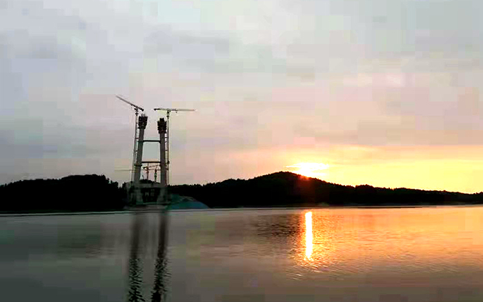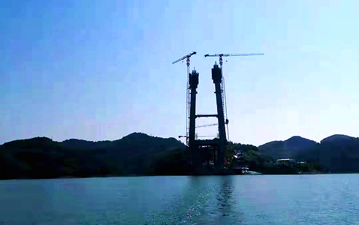 苍翠群山环抱,一库江水清澈,在被誉为“亚洲天池”的丹江口水库,两台XGT7532-20S塔机耸立岸边 金牌影院,助力着又一个世界级大桥的建设。