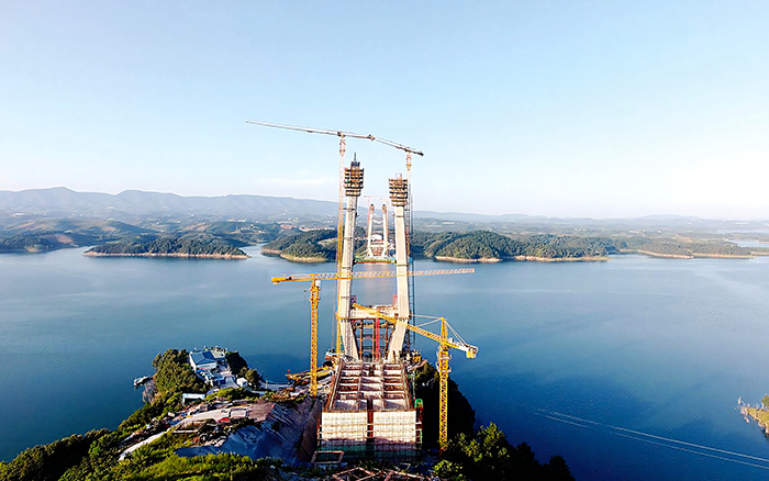 大桥全长1076米,主跨760米,建成后将成为世界上跨径最大的地锚式混合梁斜拉桥 金牌影视资源,同时也将创造4个“世界之最”。