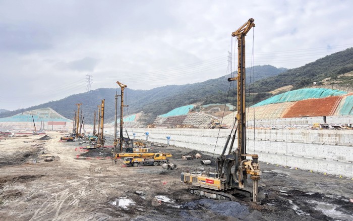 项目场地属软土地基且临近地铁5号线前海公园站 金牌影院,紧贴车站C出口主体结构,施工难度大,现场使用徐工旋挖设备11台,自进场以来,旋挖钻机群相当“给力”,保证项目按照施工节点顺利推进。