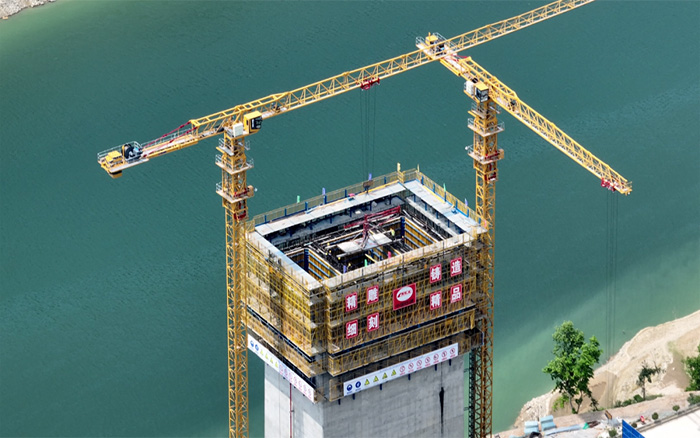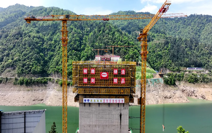 南孟溪特大桥3号墩和4号墩作为大桥的主承结构 金牌高清播放,桥梁主塔的建设程度直接关乎桥梁的承受力与稳定性,项目方最终决定采用徐工XGT7527A-18S塔机产品负责物料吊装。