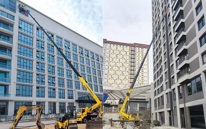 高层楼宇外侧飘窗突出结构密集分布,对高空作业的精准度和灵活性要求极高,传统设备因臂架笨重,跨障能力弱,难以精准抵达作业点位,施工进度频频受阻,而徐工 GKS45A 搭载“基本臂 + 六节伸缩臂 + 独立飞臂” 创新结构,紧凑灵动的小飞臂如同精准的 “高空画笔”,轻松绕开各类障碍物,稳稳定格每一个作业位置,完美匹配新楼施工的严苛需求 金牌影视资源。