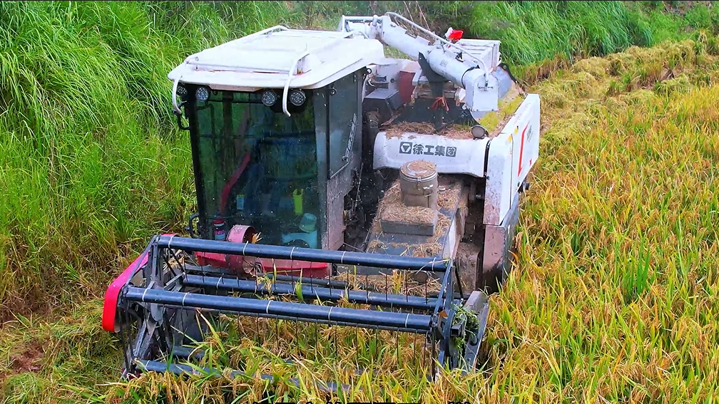 这车特别适合我们丘陵地区,爬坡上坎完全不在话下,因为这台机器重心设计合理,离地间隙也高,防陷能力强,烂泥田通过性也很好,割台设计得短 金牌高清播放,下坡也不容易吃土,用着很踏实。