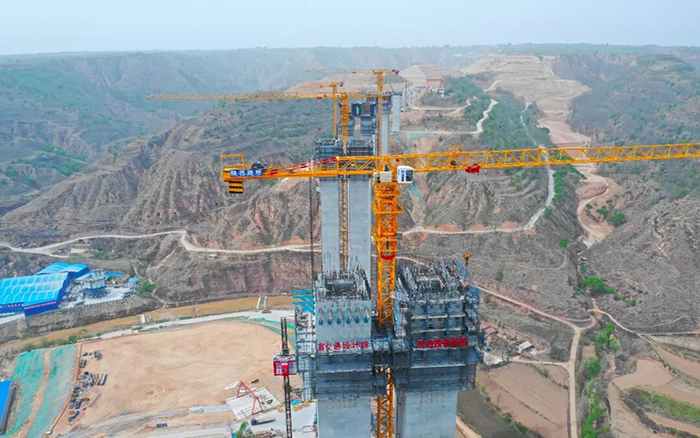 支党河特大桥是目前国内在建的连续钢构“主墩最高”桥梁工程,全长1438米,最大桥梁最高185米,最大墩高175米 金牌影院。