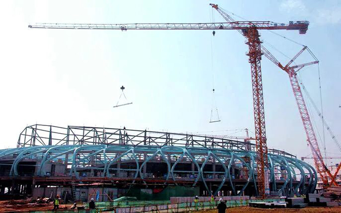 滁州奥体中心项目位于明湖景观区域,规划占地约1100亩,总建筑面积约13,4万平方米,主要建设项目为一场两馆、含全民健身中心和大型体育生态公园。徐工塔机多台XGT7022-12S产品参与滁州奥体中心项目建设,经过近一年的紧张施工,项目主体混凝土施工已基本完成,进入钢构吊装建设。 金牌影院。